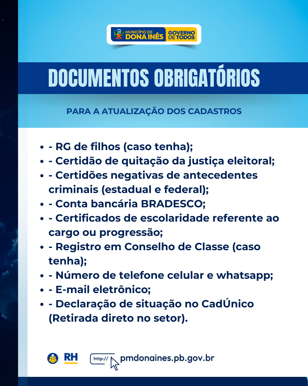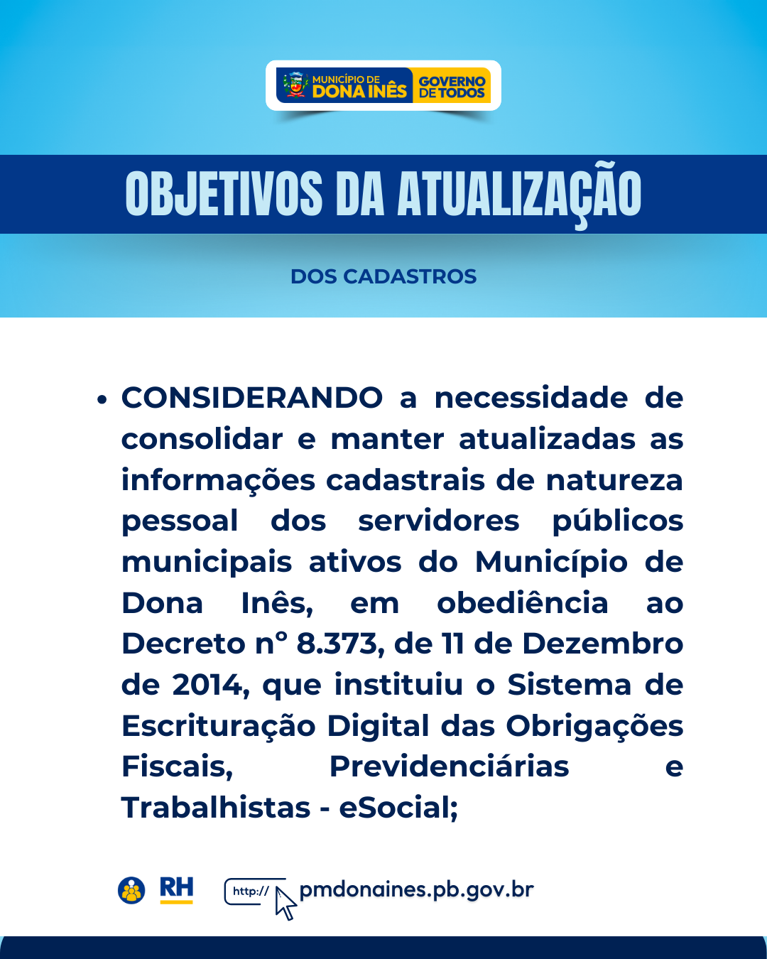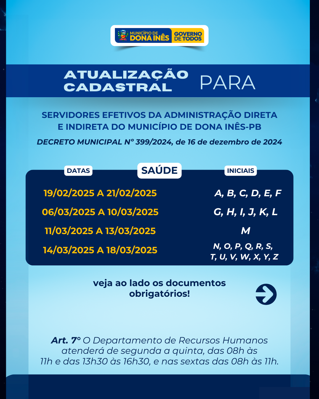 Atenção servidores públicos, para a atualização cadastral, a respeito do Decreto Nº 399/2024