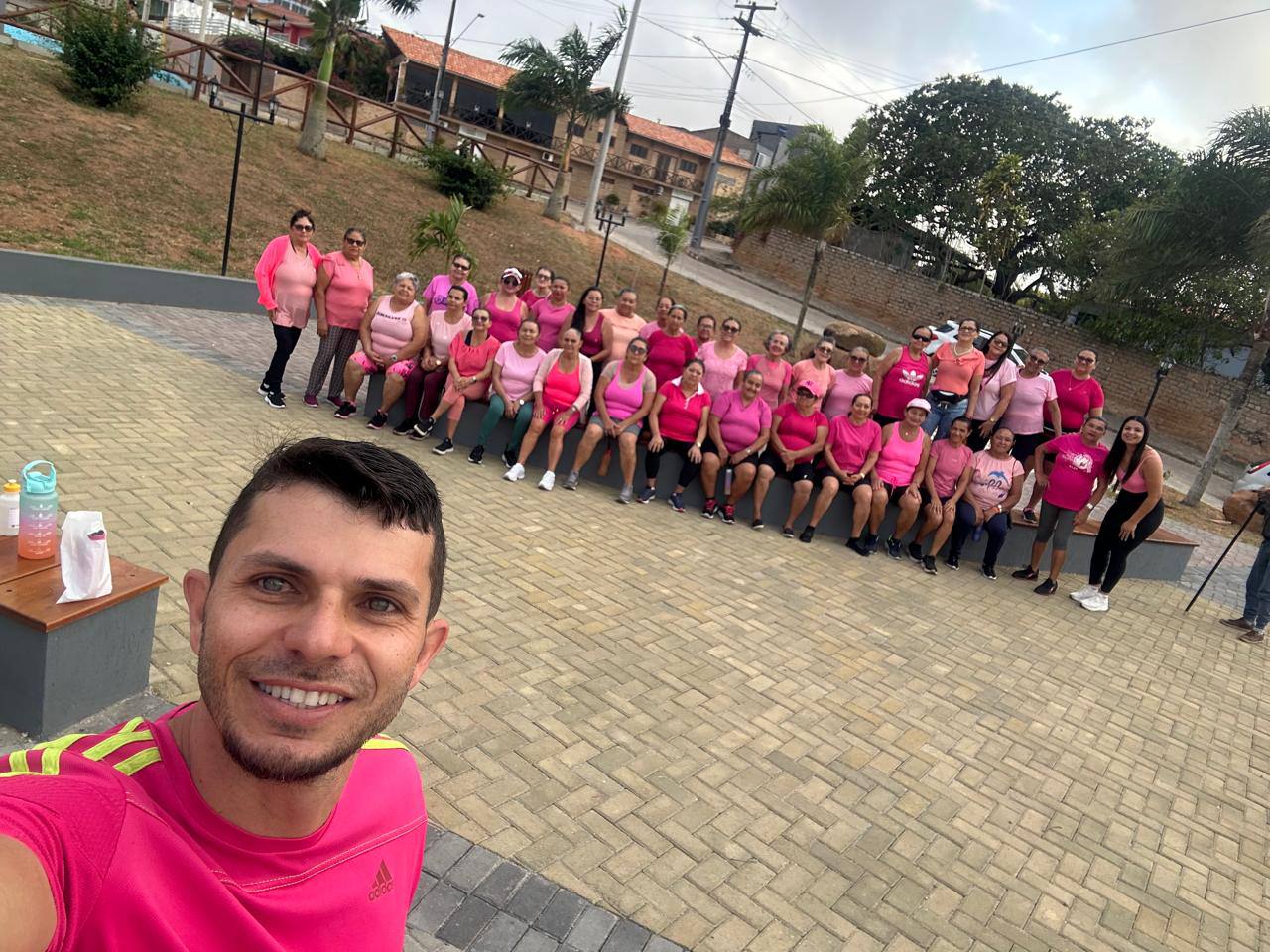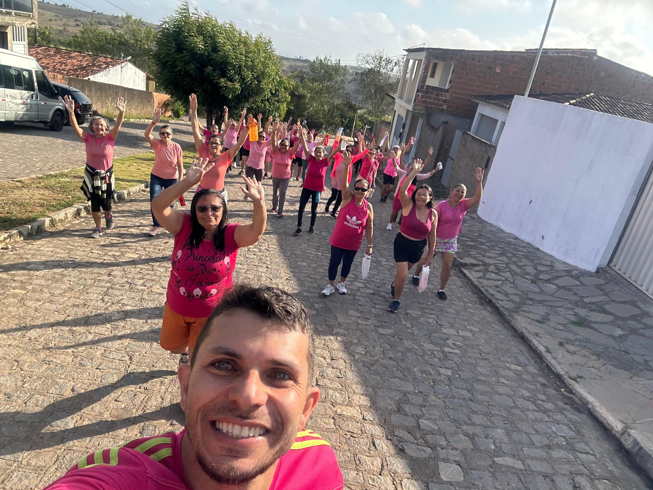 Manhã especial marcou mais uma ação da campanha Outubro Rosa em Dona Inês. A equipe da Academia da Saúde promoveu uma atividade voltada ao cuidado e bem-estar da população, com alongamento, caminhada orientada pelo educador físico e aferição de glicemia e pressão arterial.
