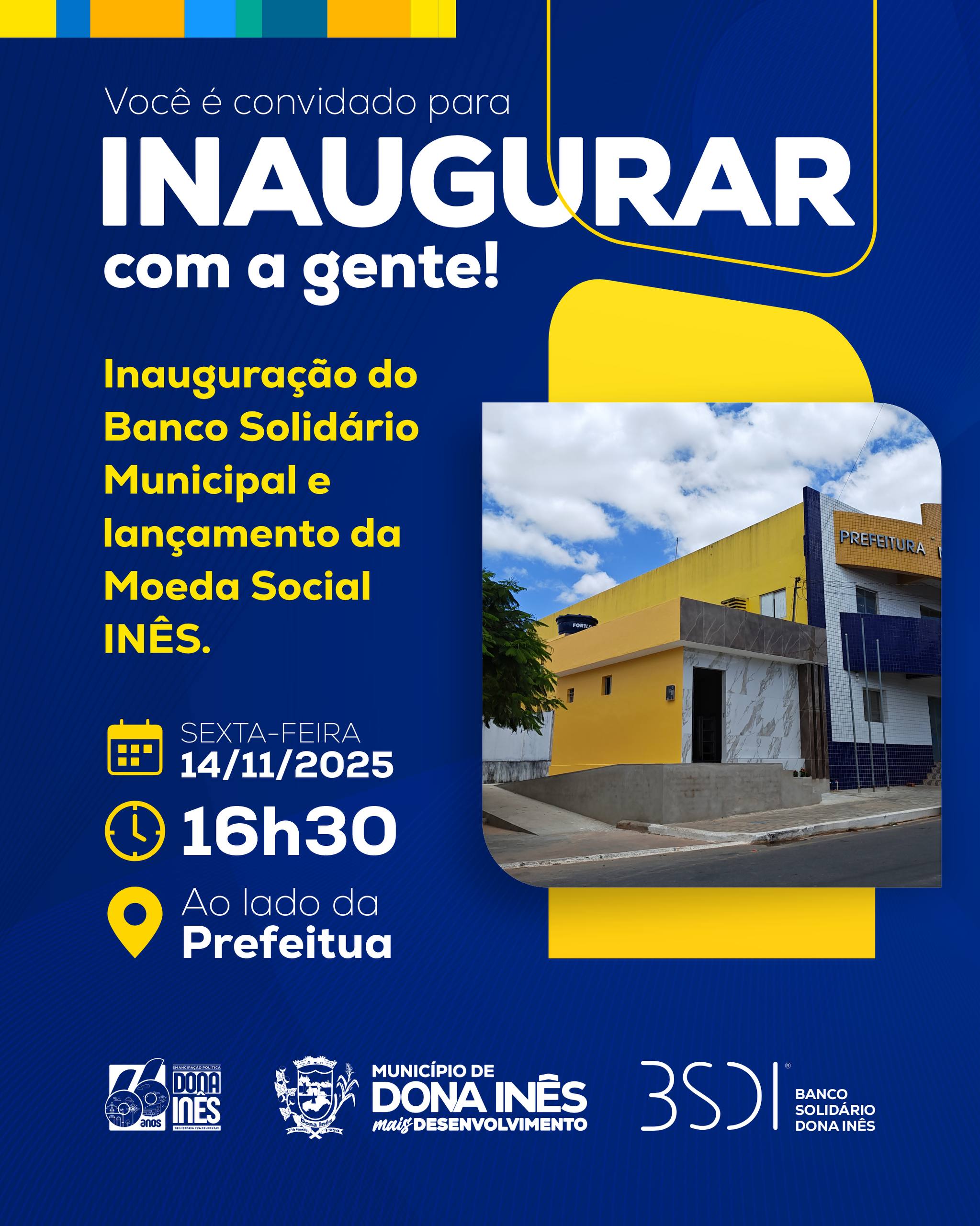 Já na sexta-feira, 14 de novembro, às 16h30, acontece o lançamento oficial do Banco Solidário Municipal e da Moeda Social “Inês”, iniciativa pioneira na Paraíba que reforça a economia solidária local.