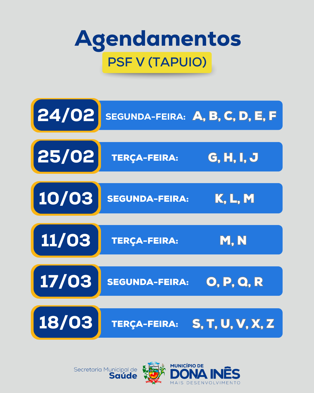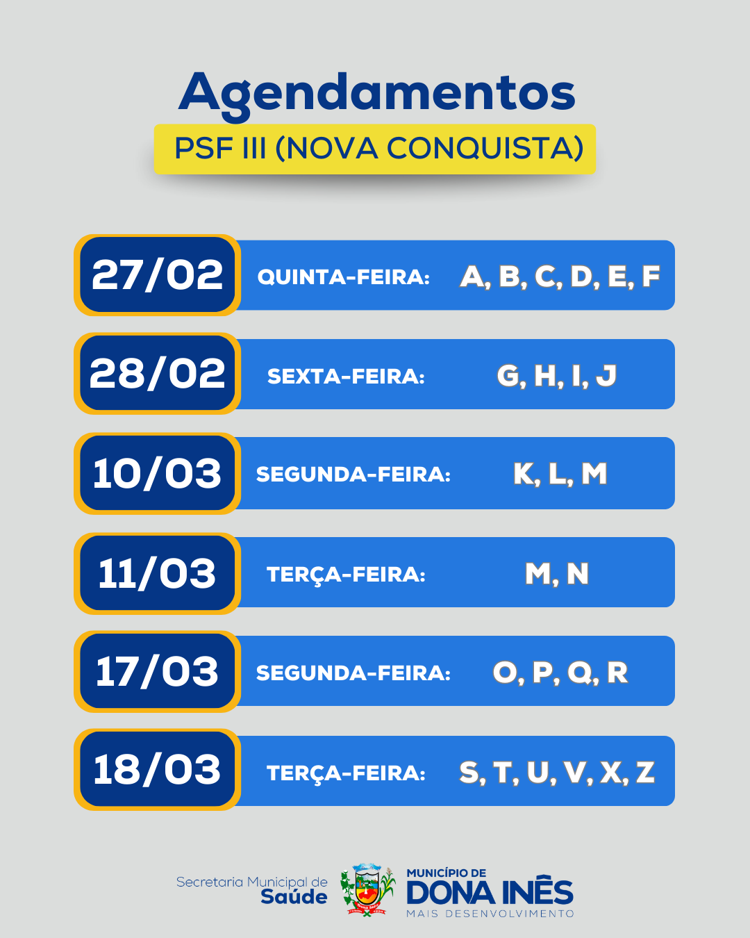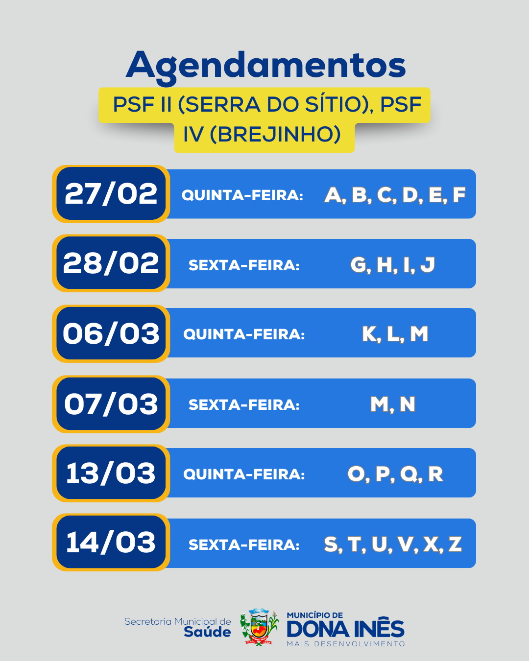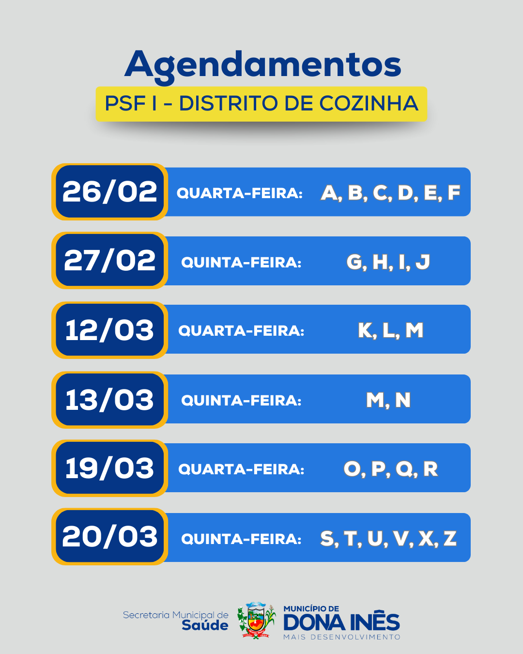 🔹 Os atendimentos seguirão rigorosamente o cronograma estabelecido.