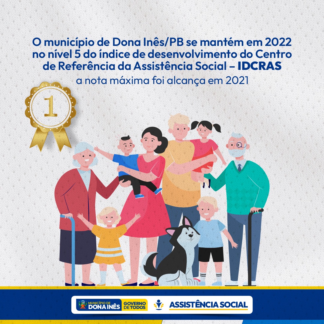 O município de Dona Inês/PB se mantém em 2022 no nível 5 do índice de desenvolvimento do Centro de Referência da Assistência Social – IDCRAS, a nota máxima foi alcança em 2021.