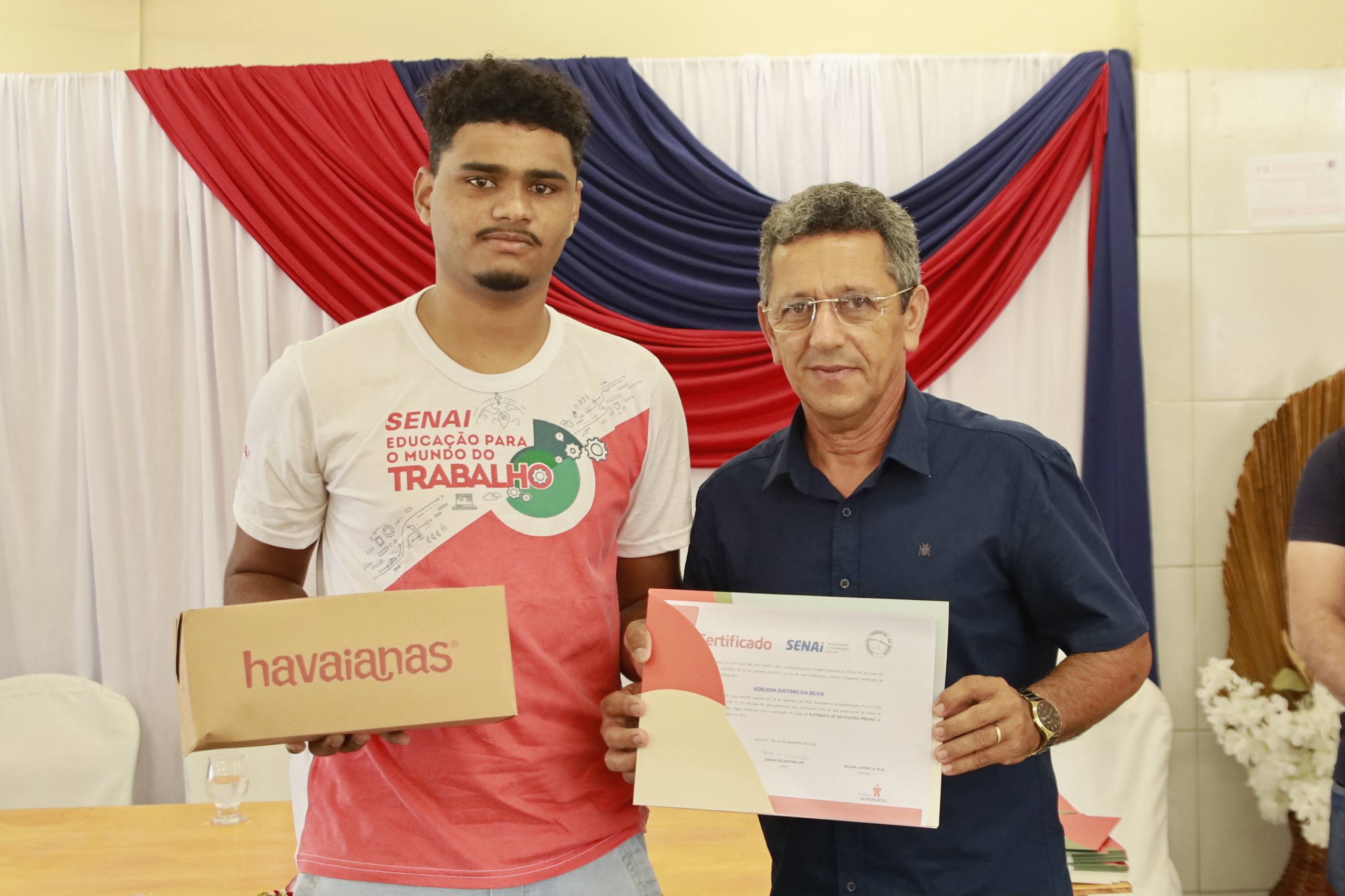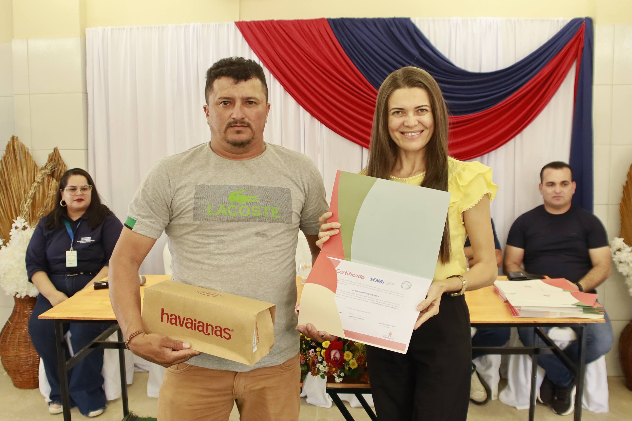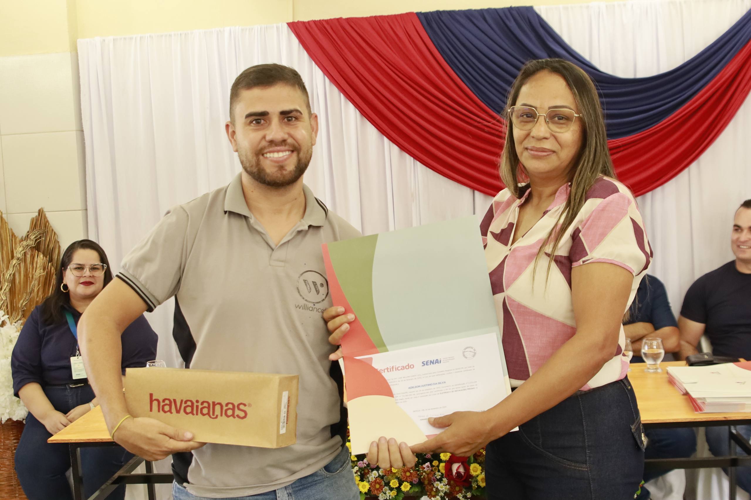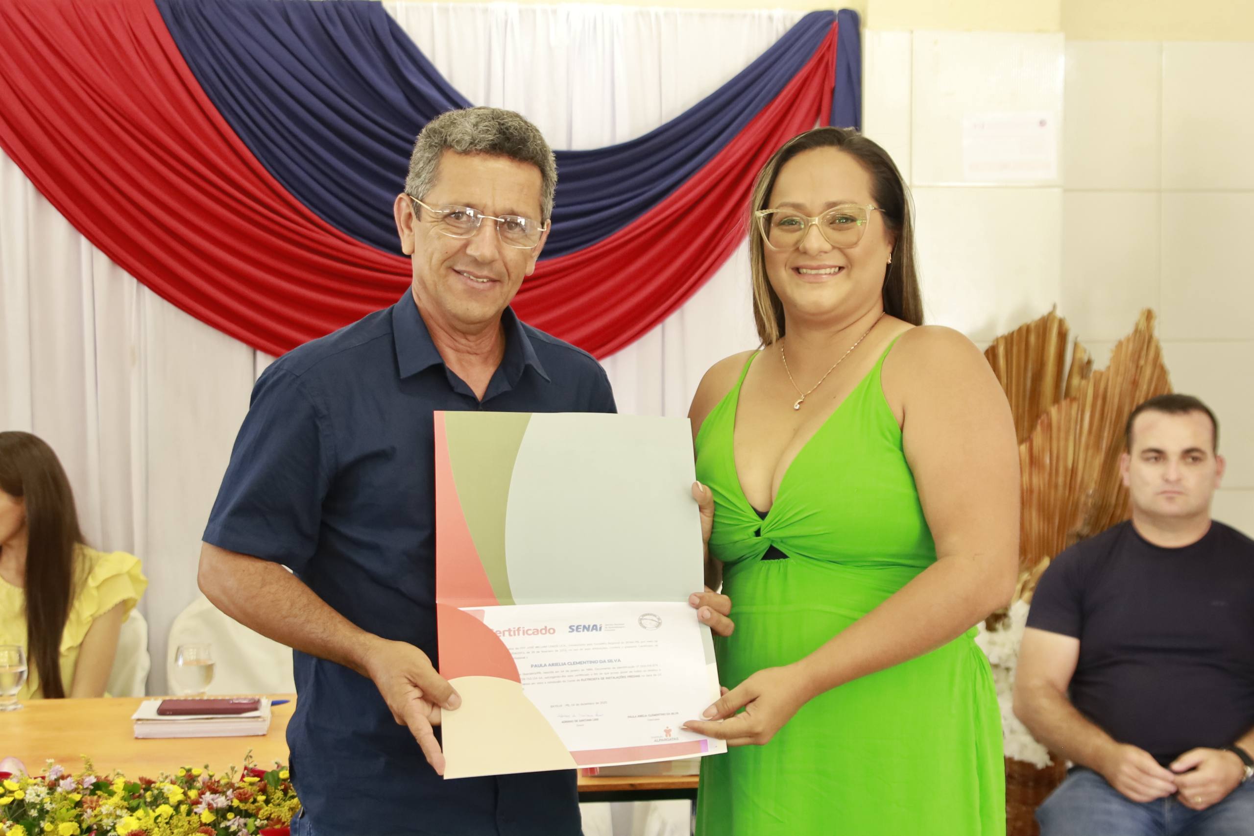 O evento contou com a presença de importantes autoridades e parceiros institucionais, entre eles o vice-prefeito Edmilson, o presidente da Câmara Municipal de Vereadores, Ruan Araújo, a secretária adjunta de Desenvolvimento Social, Joana Lima, além de representantes do SENAI e da empresa Alpargatas, parceiros fundamentais para a promoção da capacitação técnica no município.