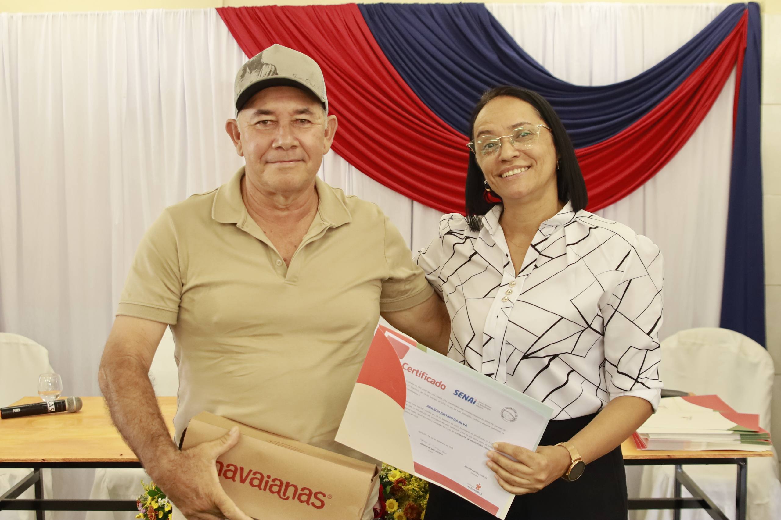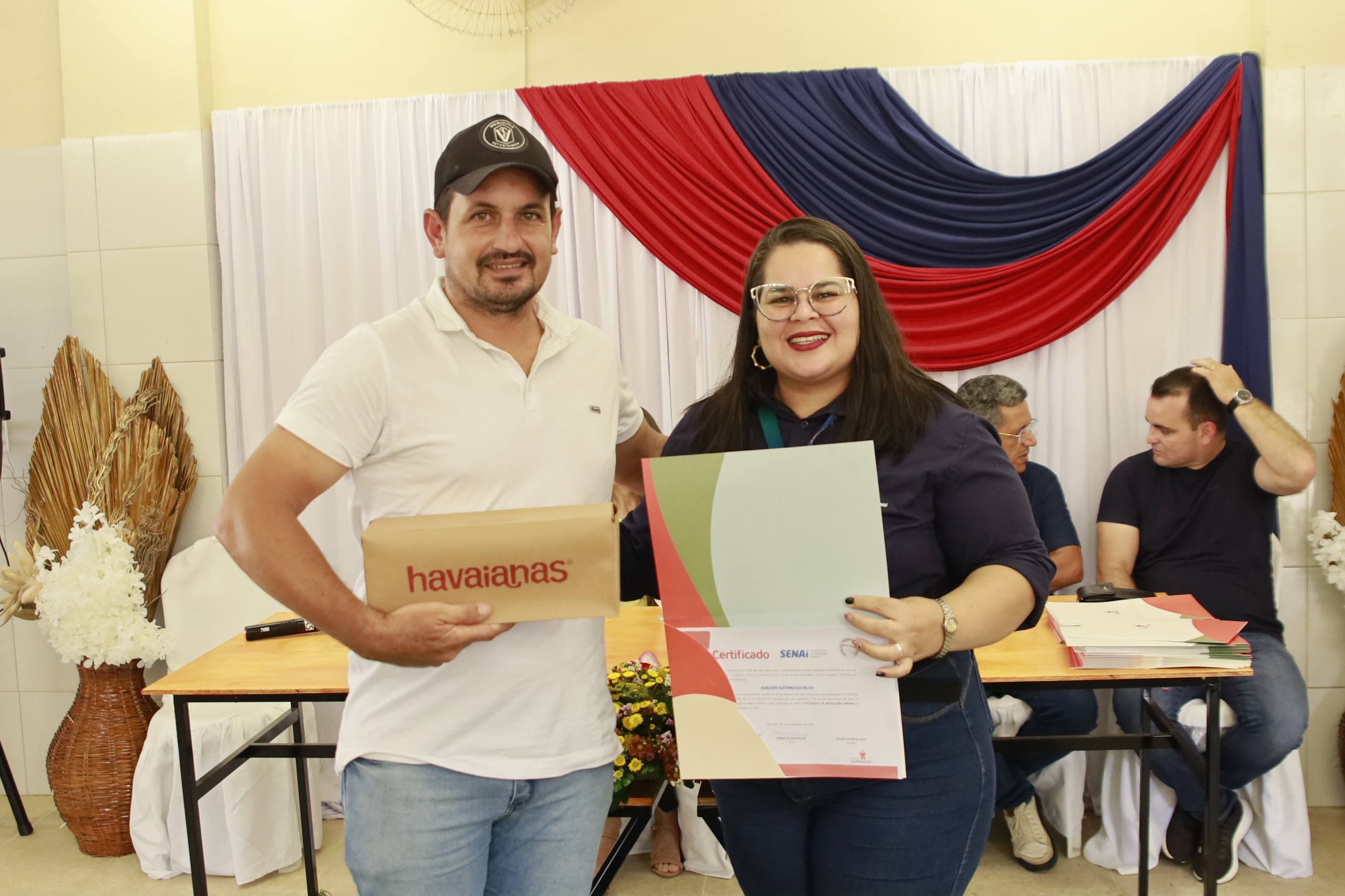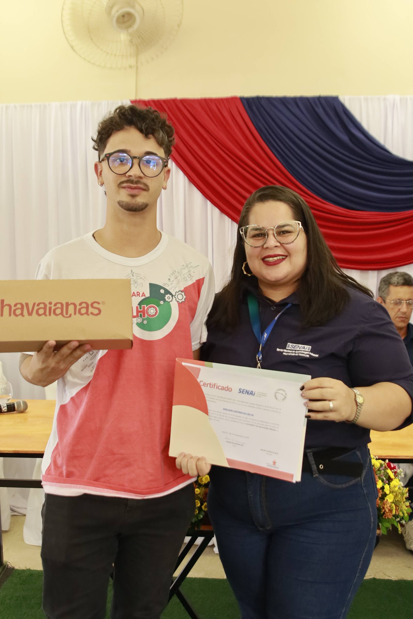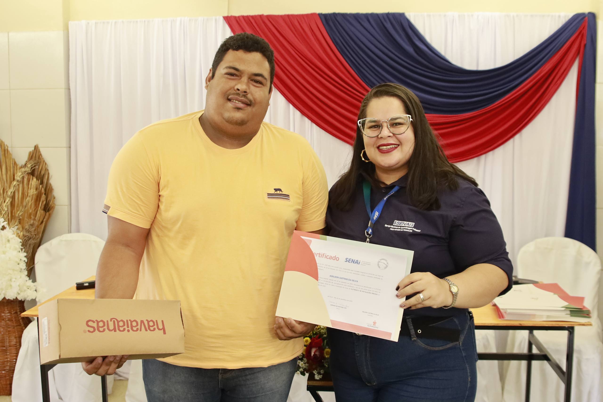 O evento contou com a presença de importantes autoridades e parceiros institucionais, entre eles o vice-prefeito Edmilson, o presidente da Câmara Municipal de Vereadores, Ruan Araújo, a secretária adjunta de Desenvolvimento Social, Joana Lima, além de representantes do SENAI e da empresa Alpargatas, parceiros fundamentais para a promoção da capacitação técnica no município.