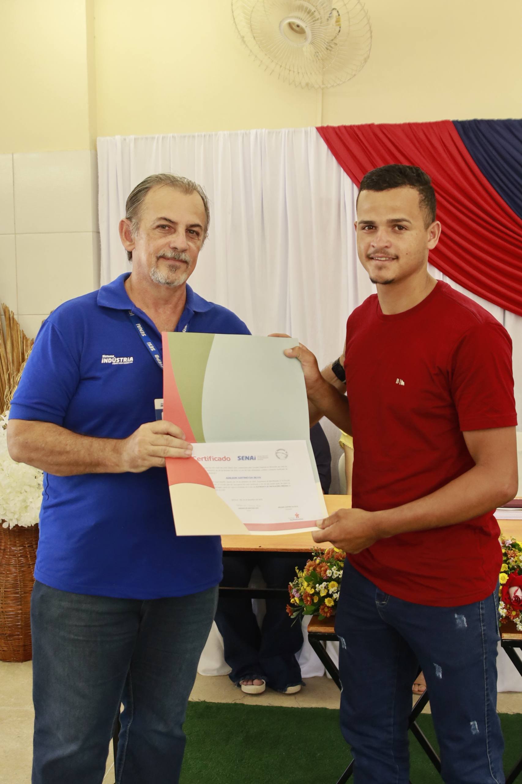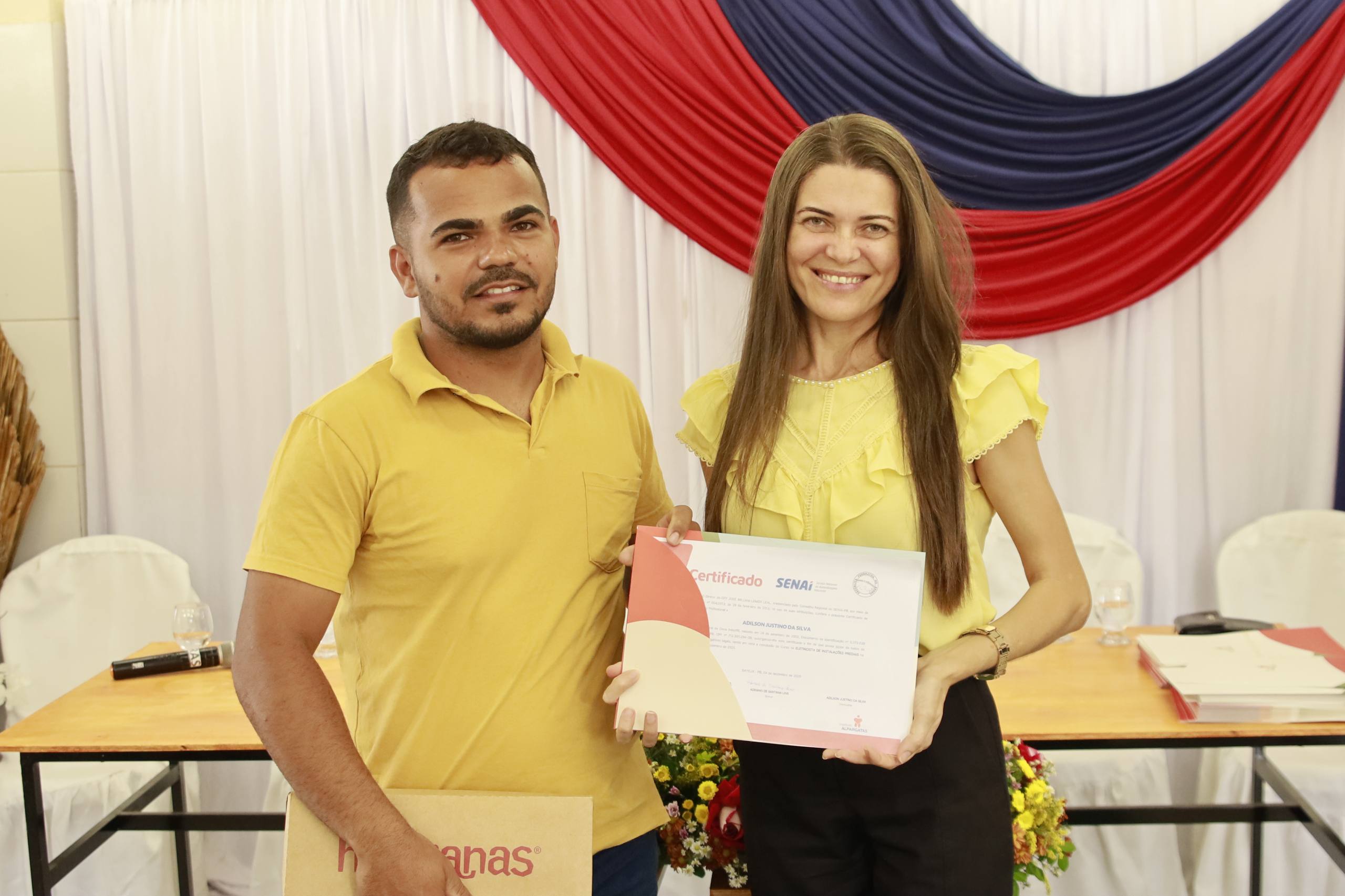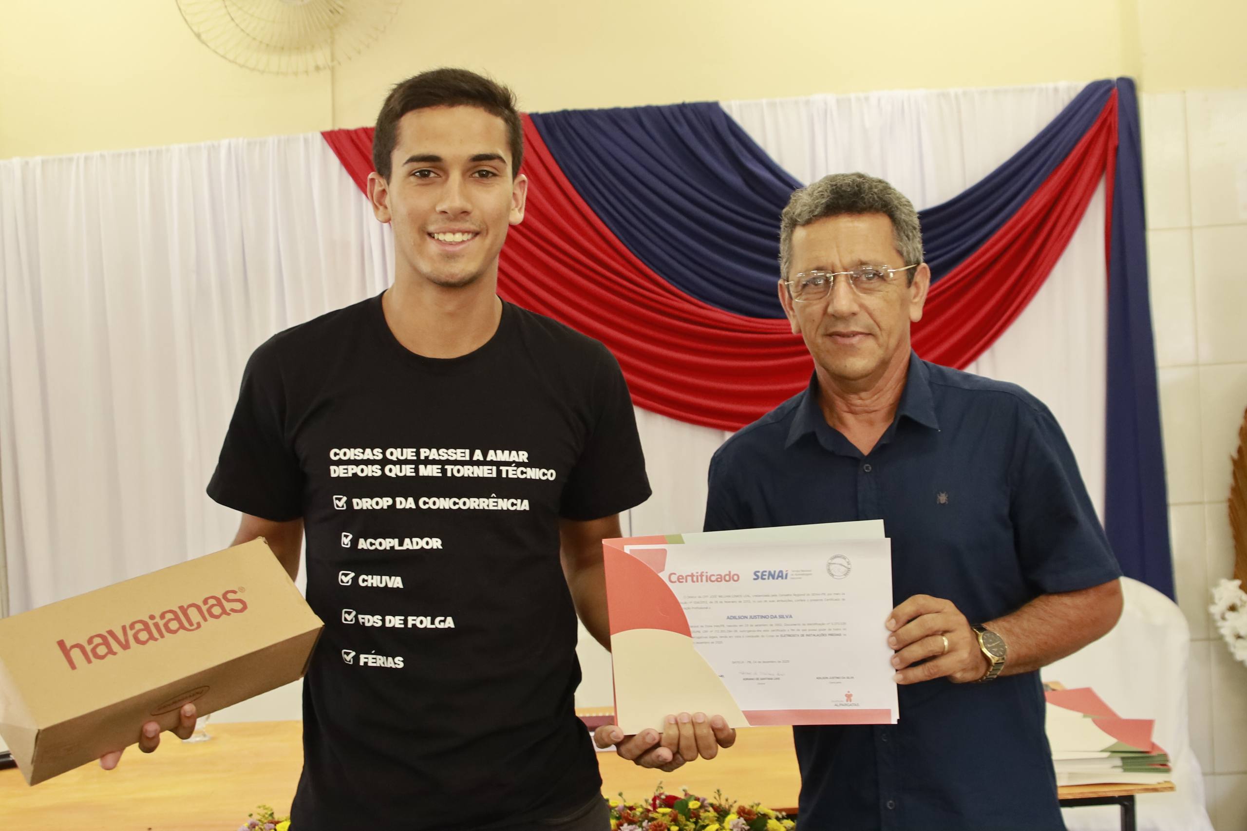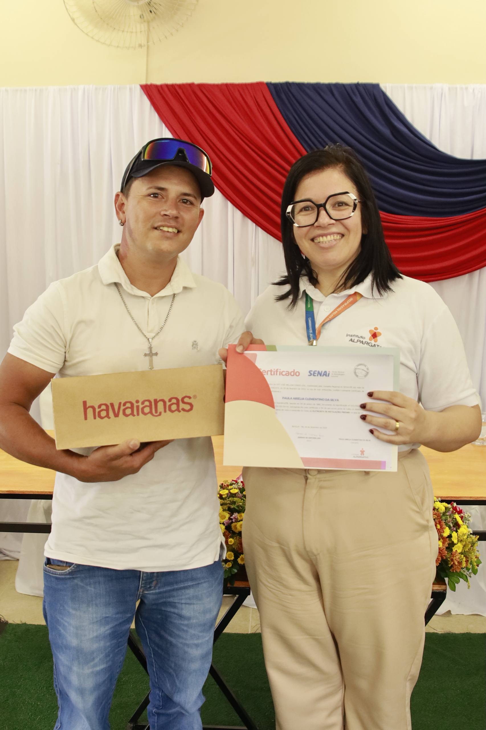 O evento contou com a presença de importantes autoridades e parceiros institucionais, entre eles o vice-prefeito Edmilson, o presidente da Câmara Municipal de Vereadores, Ruan Araújo, a secretária adjunta de Desenvolvimento Social, Joana Lima, além de representantes do SENAI e da empresa Alpargatas, parceiros fundamentais para a promoção da capacitação técnica no município.