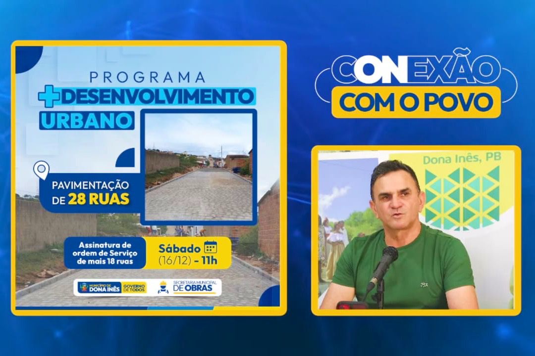 Ocorreu na manhã hoje (16/12), no auditório da prefeitura municipal durante o programa Conexão com o Povo, a assinatura da Ordem de Serviço para pavimentação de mais 18 ruas, somando com mais 10 ruas que já estão sendo pavimentadas, totalizando mais 28 ruas asfaltadas para nossa amada Dona Inês.
