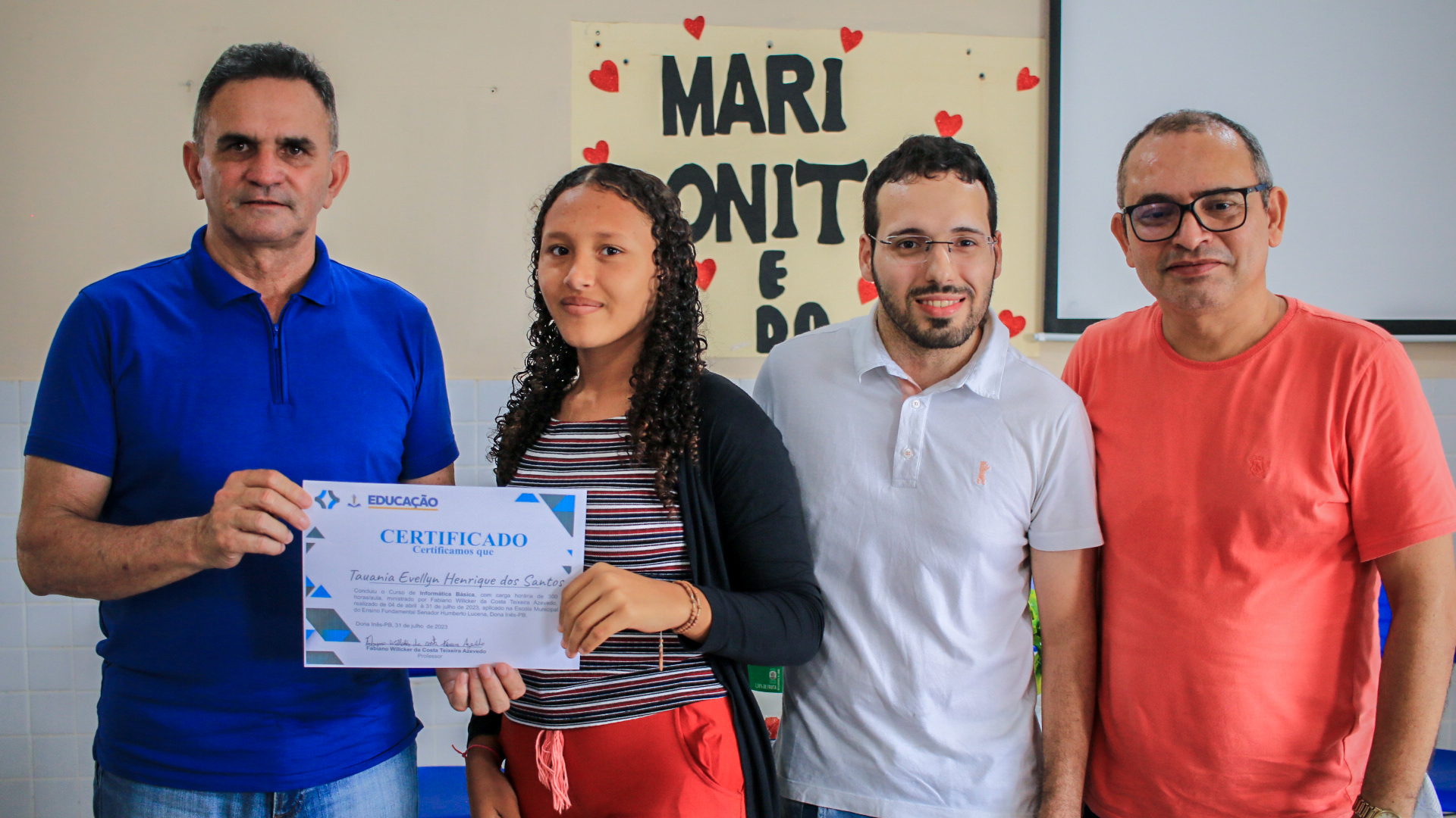 Nesta quarta-feira (09/08/23) ocorreu a entrega dos Certificados da Conclusão do Curso de Informática Básica, ofertado pela Gestão Municipal através da Secretaria de Educação ao Colégio Maria da Paz. O curso foi ministrado pelo professor Fabiano Willcker.