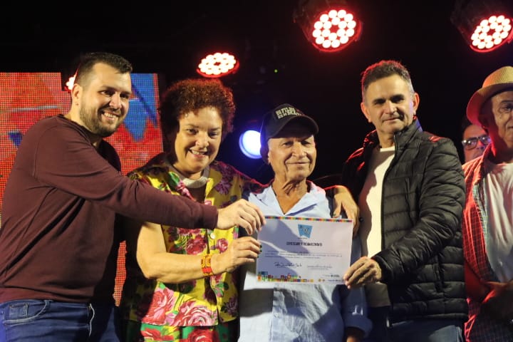Antes da música começar, foram realizadas diversas homenagens aos mestres da cultura e artistas.