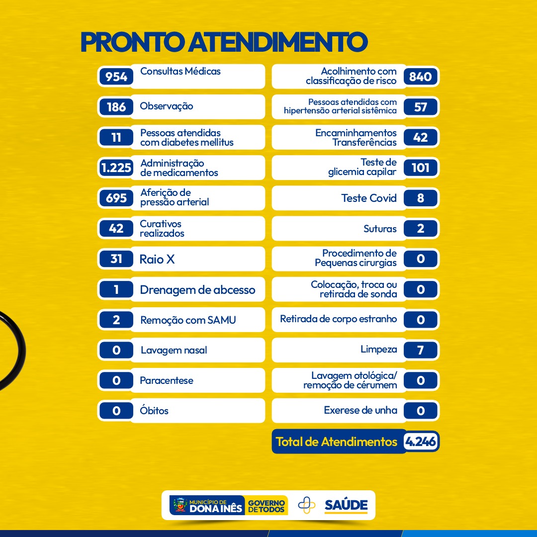 Confira o quantitativo das ações realizadas no mês de junho da Secretaria de Saúde no Pronto Atendimento Municipal, Atenção Básica, Policlínica, Vigilância em Saúde, Farmácia Básica, Assistência Social – saúde, CAPS e SISREG.
