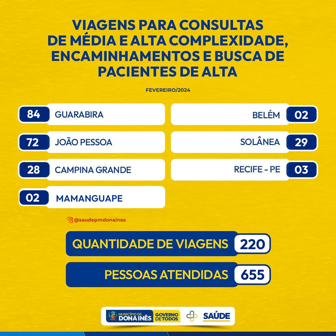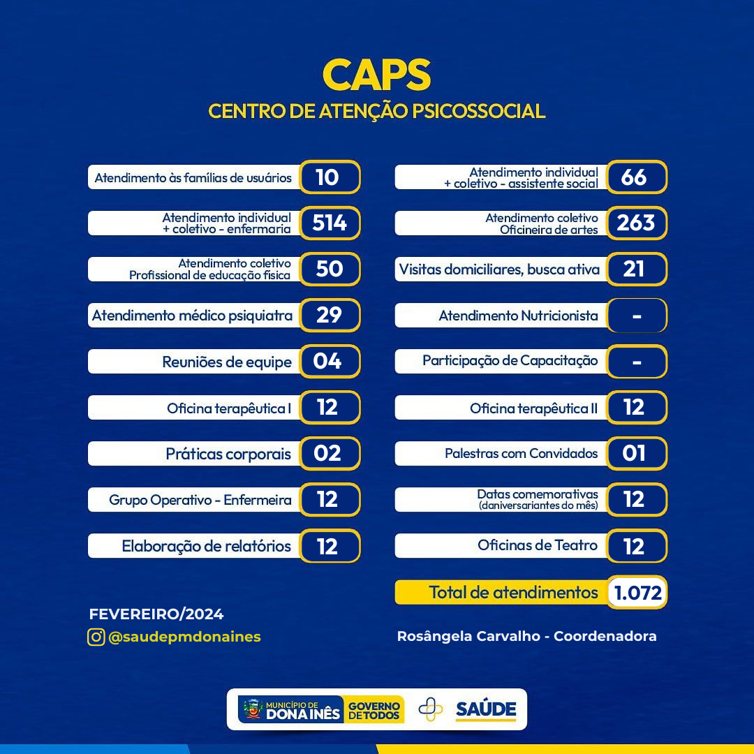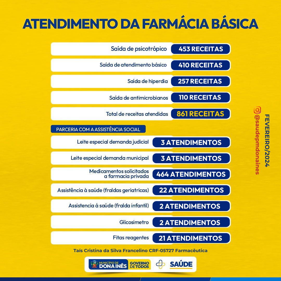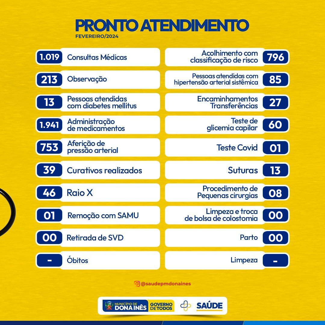 Confira o quantitativo das ações realizadas no mês de fevereiro da Secretaria de Saúde, no Pronto Atendimento Municipal, Atenção Básica, Policlínica, Vigilância em Saúde, Farmácia Básica, Assistência Social – Saúde, bem como o CAPS.