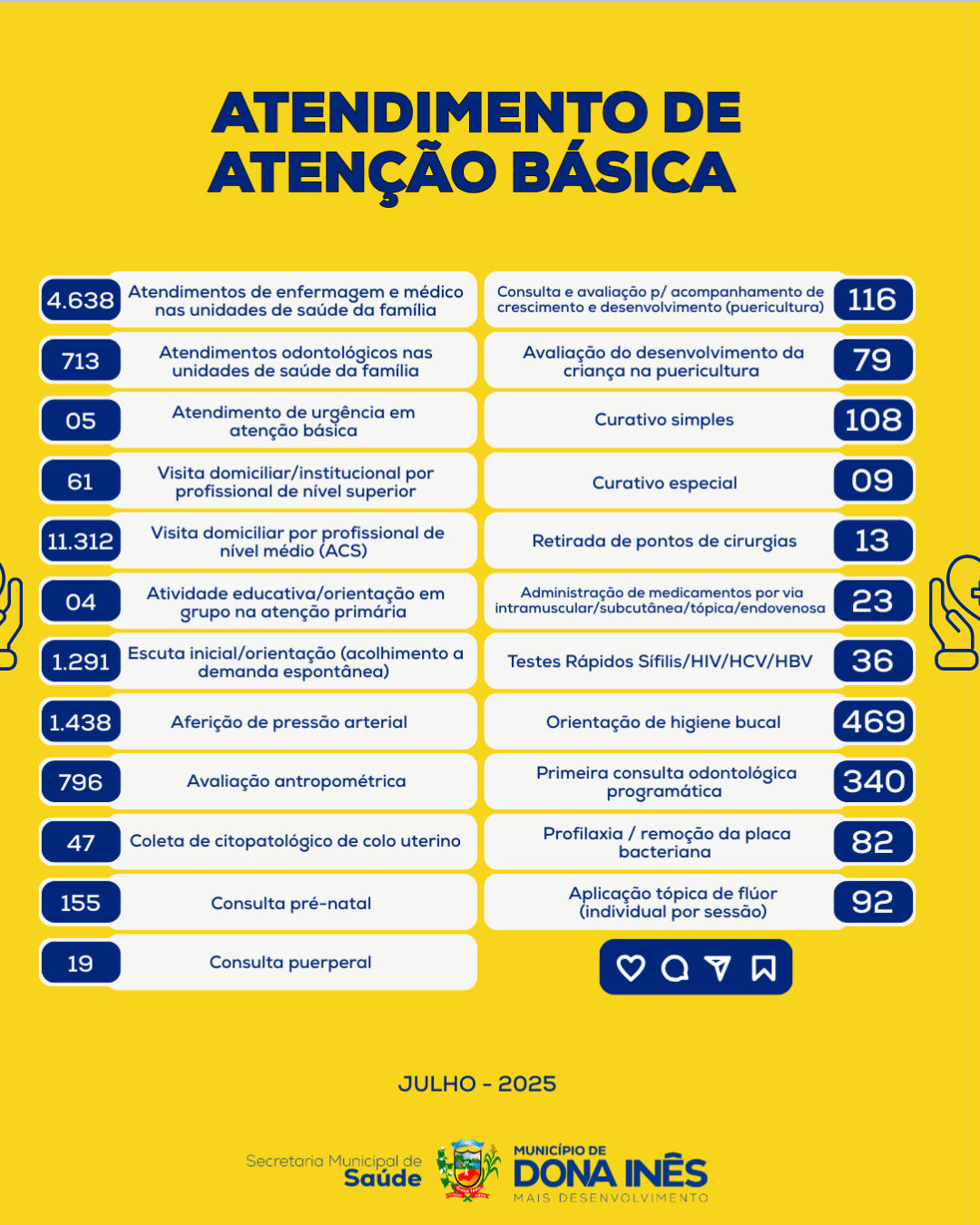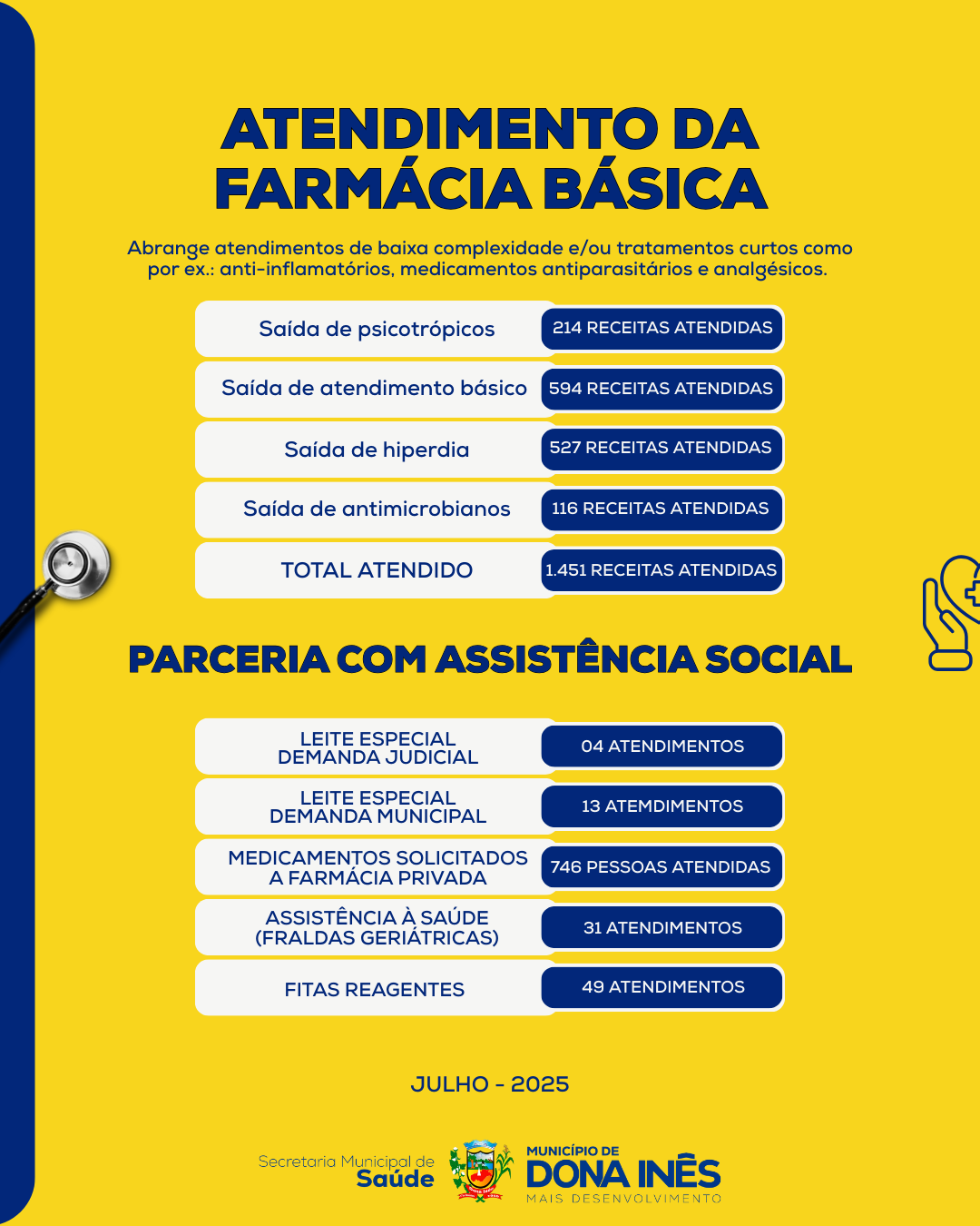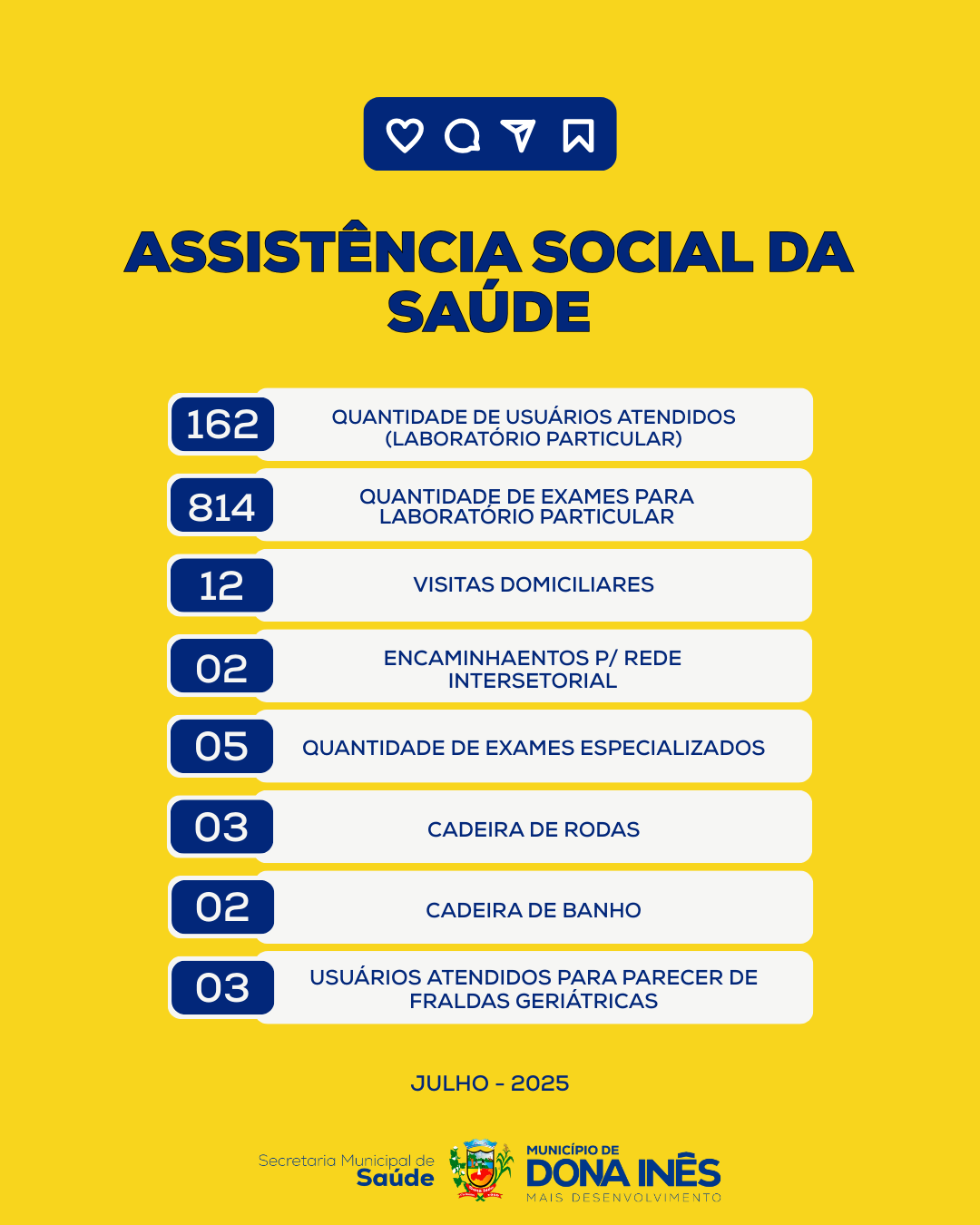 A Secretaria de Saúde de Dona Inês segue comprometida com o bem-estar da nossa população! Confira o quantitativo das ações realizadas em julho de 2025: