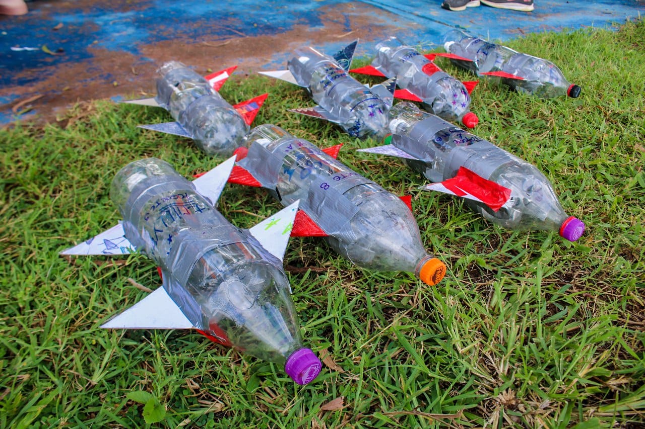 Na oportunidade foram realizados testes de foguetes a base de água e gás comprimido, chegando à em média 115 metros de distância.