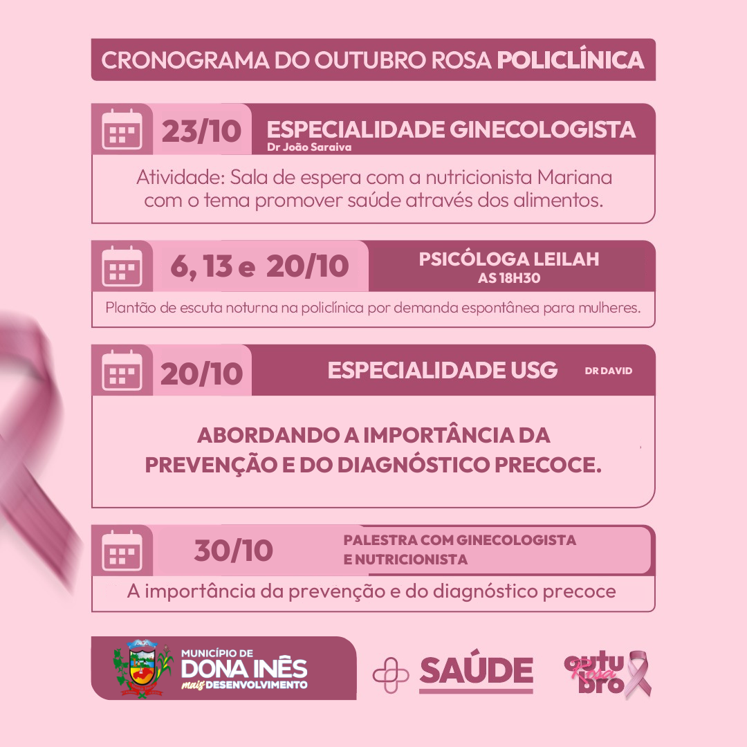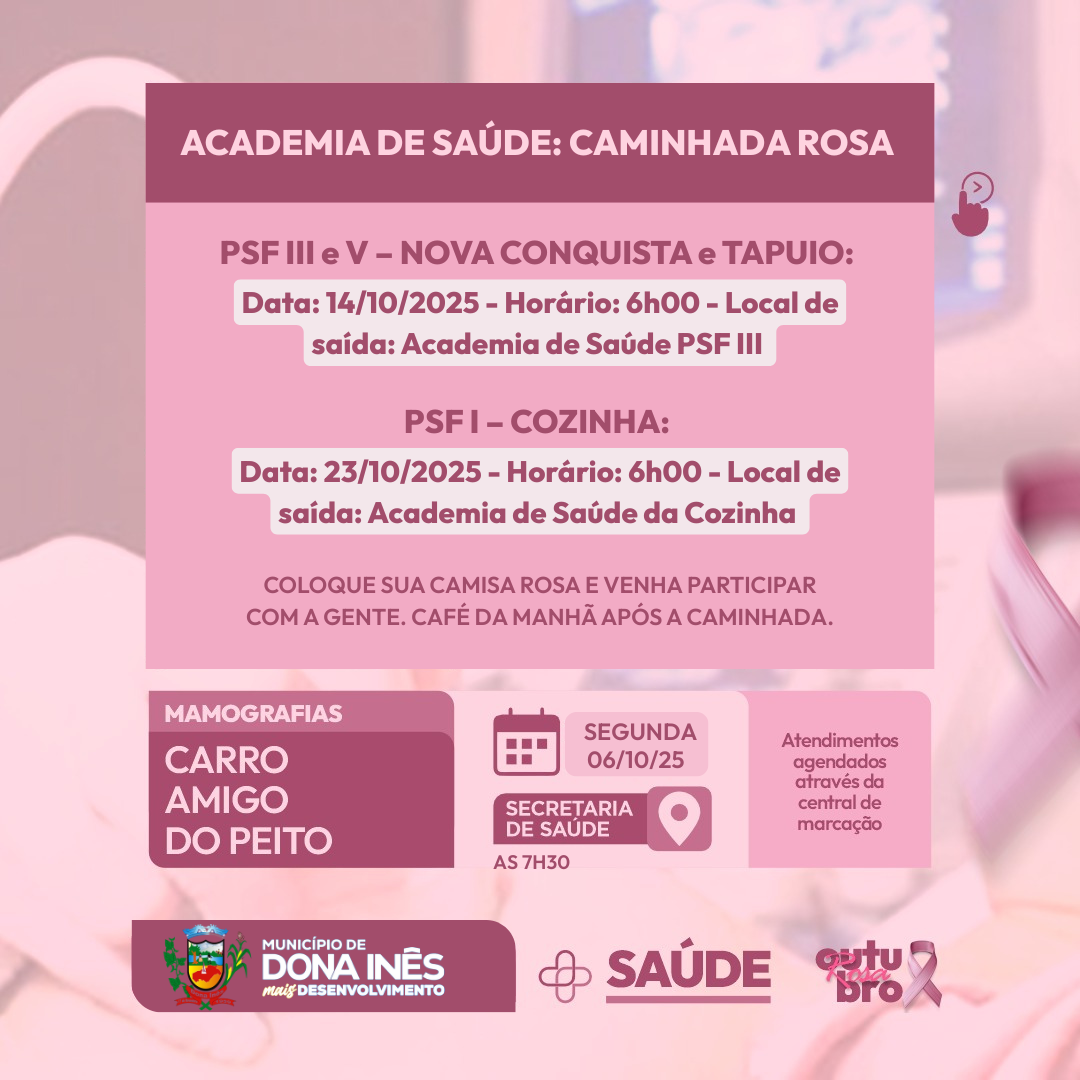 Outubro Rosa em Dona Inês. Confira a programação!