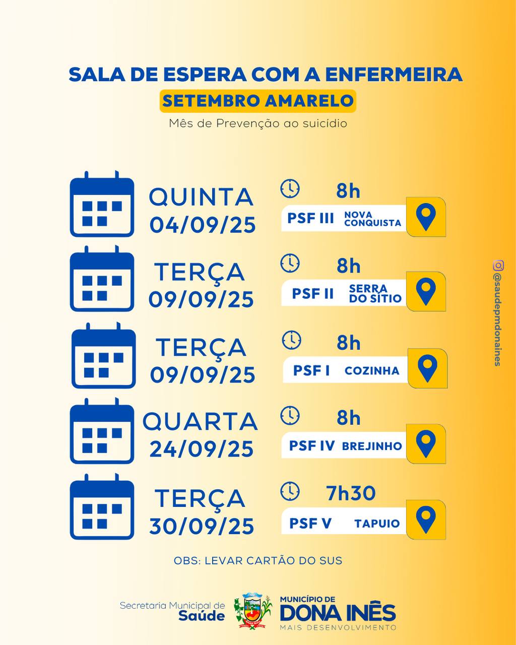 Estamos vivendo o Setembro Amarelo com ações nas UBSs, promovendo escuta, acolhimento e cuidado com a saúde mental.
