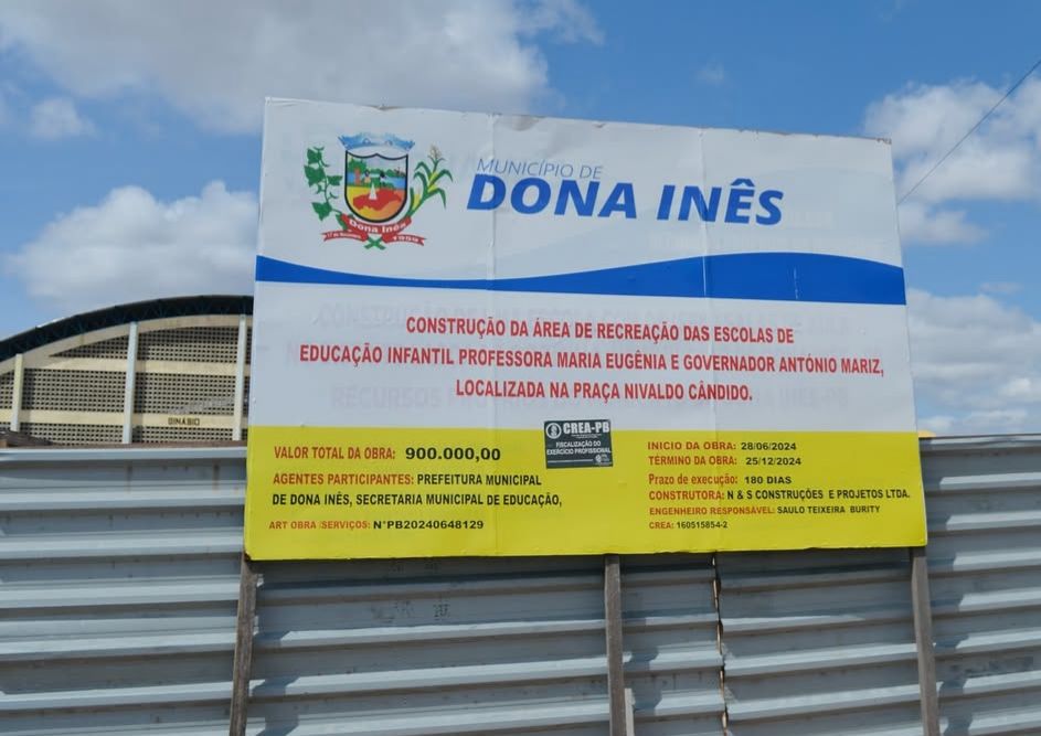 O prefeito de Dona Inês-PB Antônio Justino, está acompanhando de perto o andamento da construção da área de recreação das escolas: Professora Maria